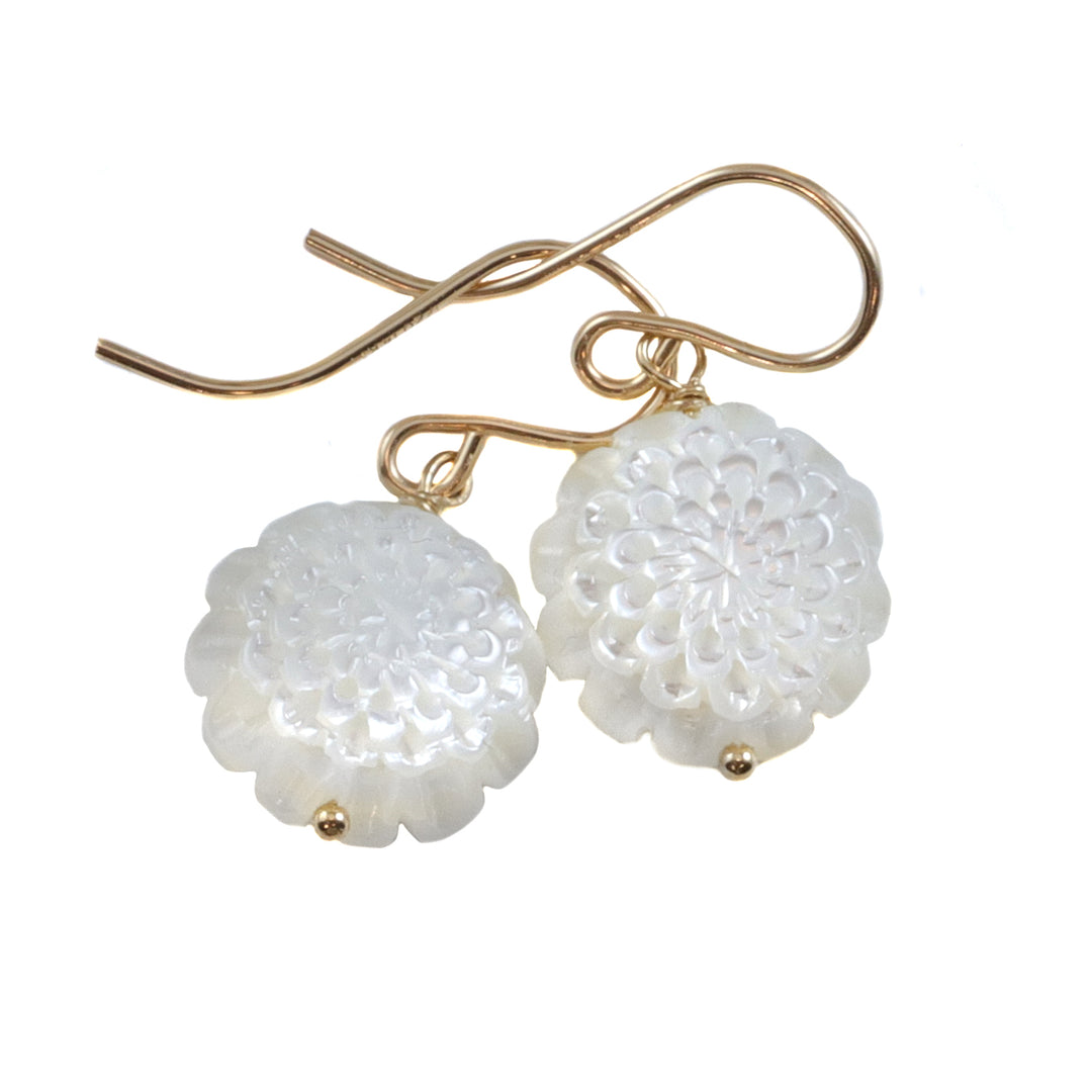 Copy of Mother of Pearl Earrings White Rose Shell Carved Lotus Flower Natural 14k Solid Gold or Filled or Sterling Silver Simple MOP Lightweight Drop