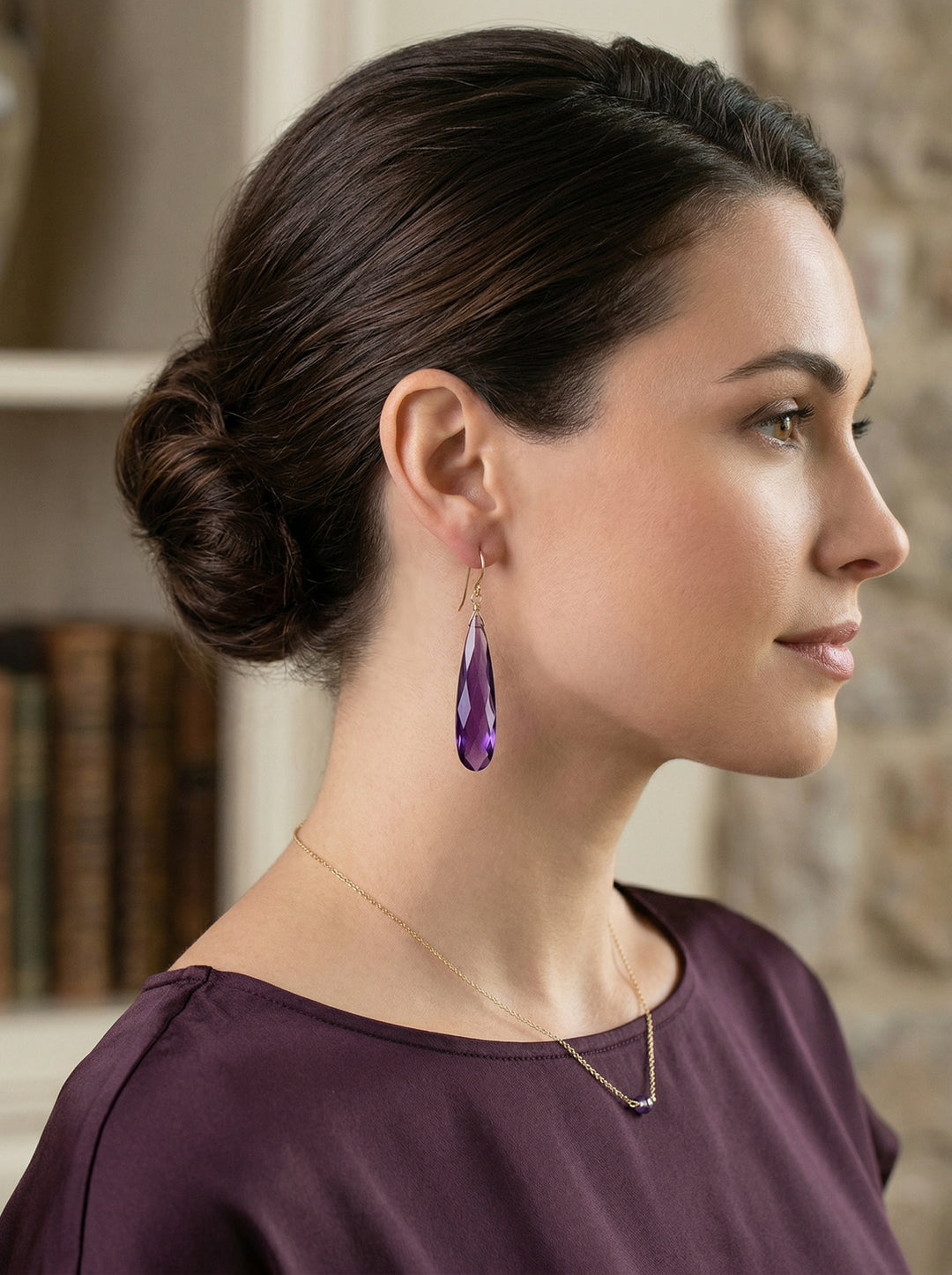 Purple Amethyst Earrings Faceted Marquise Simulated Briolette Cut 14k Solid Gold or Filled or Sterling Silver Teardrop Fancy Deep Rich color