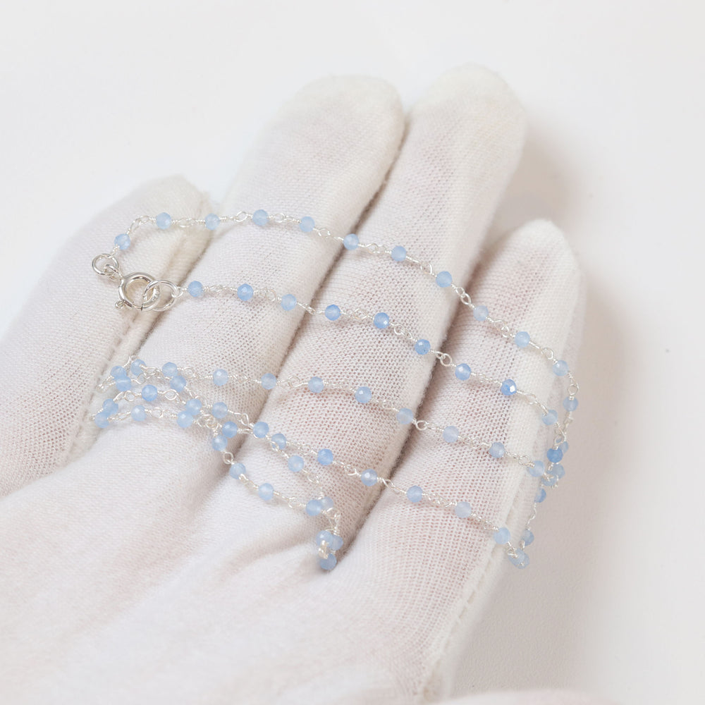 Chalcedony Necklace Soft Blue Sterling Silver Faceted Chain Link 18 19 Inches Soft Pale Blue Dainty