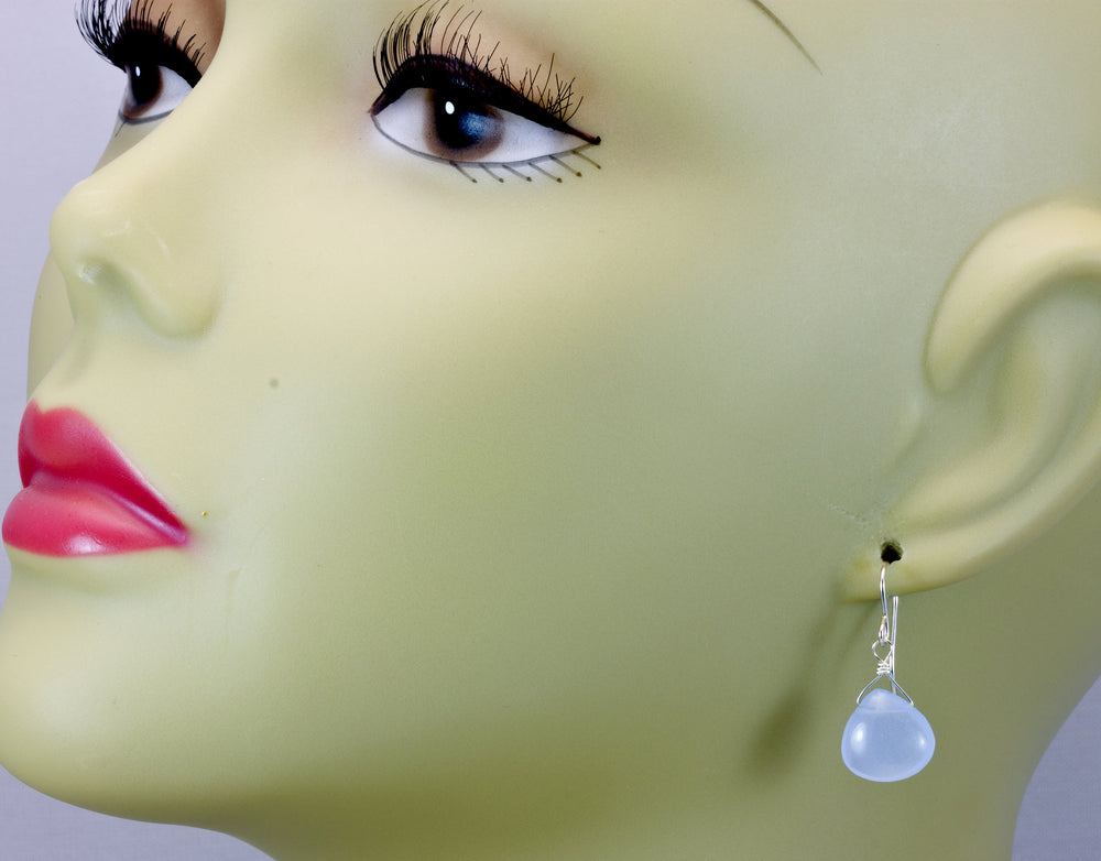 Steel Blue Gray Chalcedony Earrings Teardrop Heart Smooth Sterling Silver or 14k Solid Gold or Filled Simple Classic Daily Wear Drops