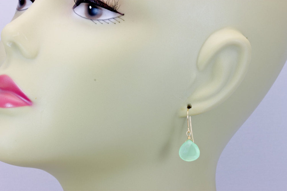 Green Chalcedony Earrings Soft Pale Teardrop AAA Pear Shaped Faceted 14k Solid Gold or Filled or Sterling Silver Natural Simple Drops