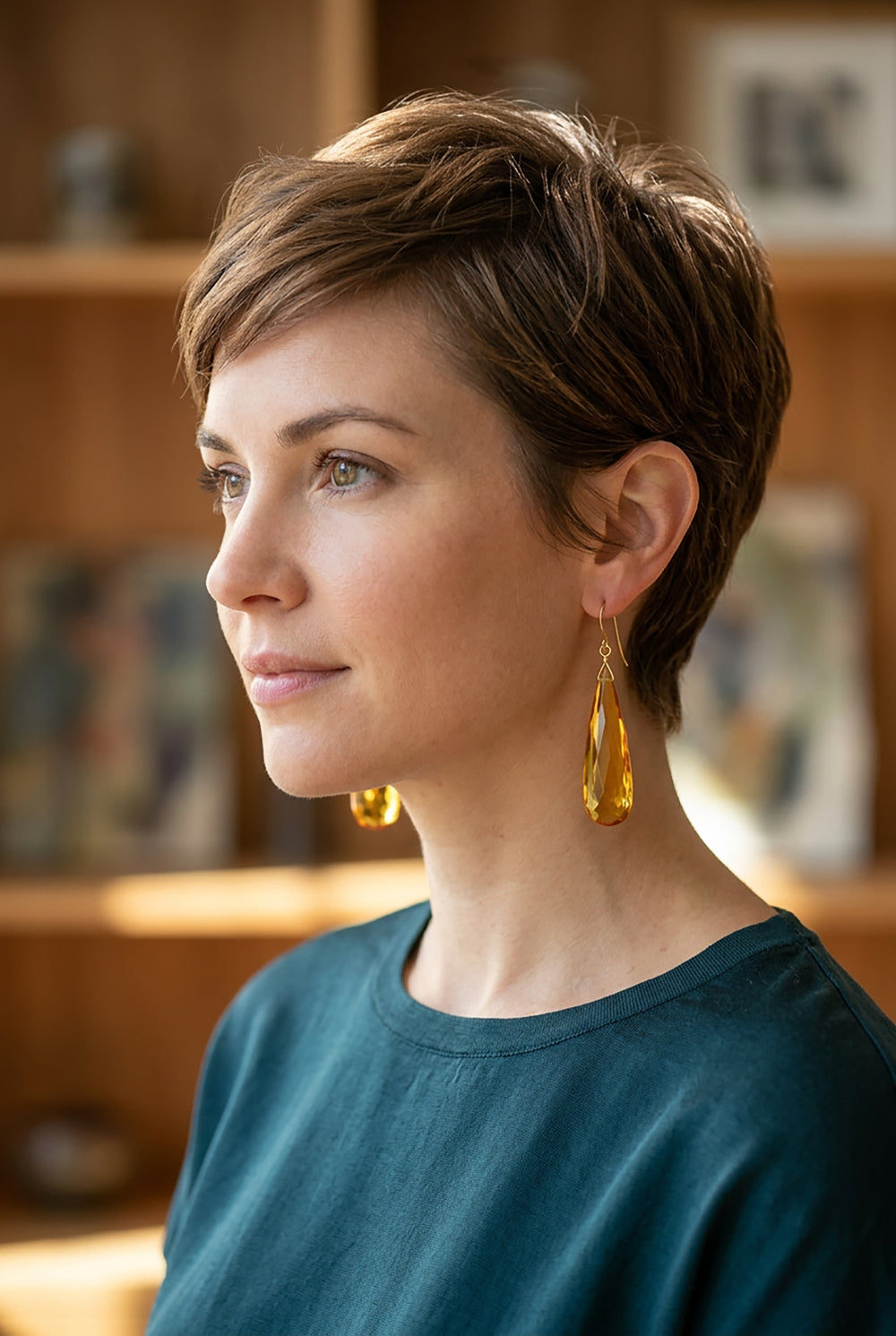 Yellow Citrine Earrings Natural Briolette Cut Gemstones 14k solid gold or 14k Gold filled Spyglass Designs Simple 2.2 Inches