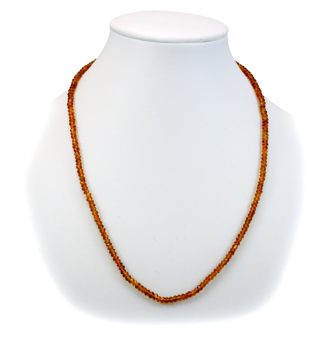 Citrine Necklace Natural Dark Yellow Orange Beaded Sterling Silver Faceted Rondelles 18 Inch AAA Solid Strand Classic chic earthy design