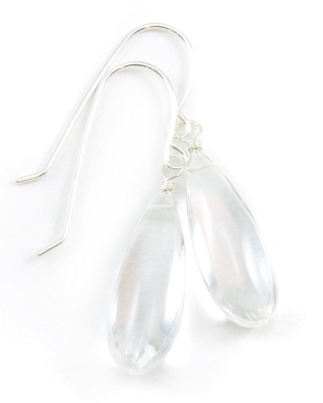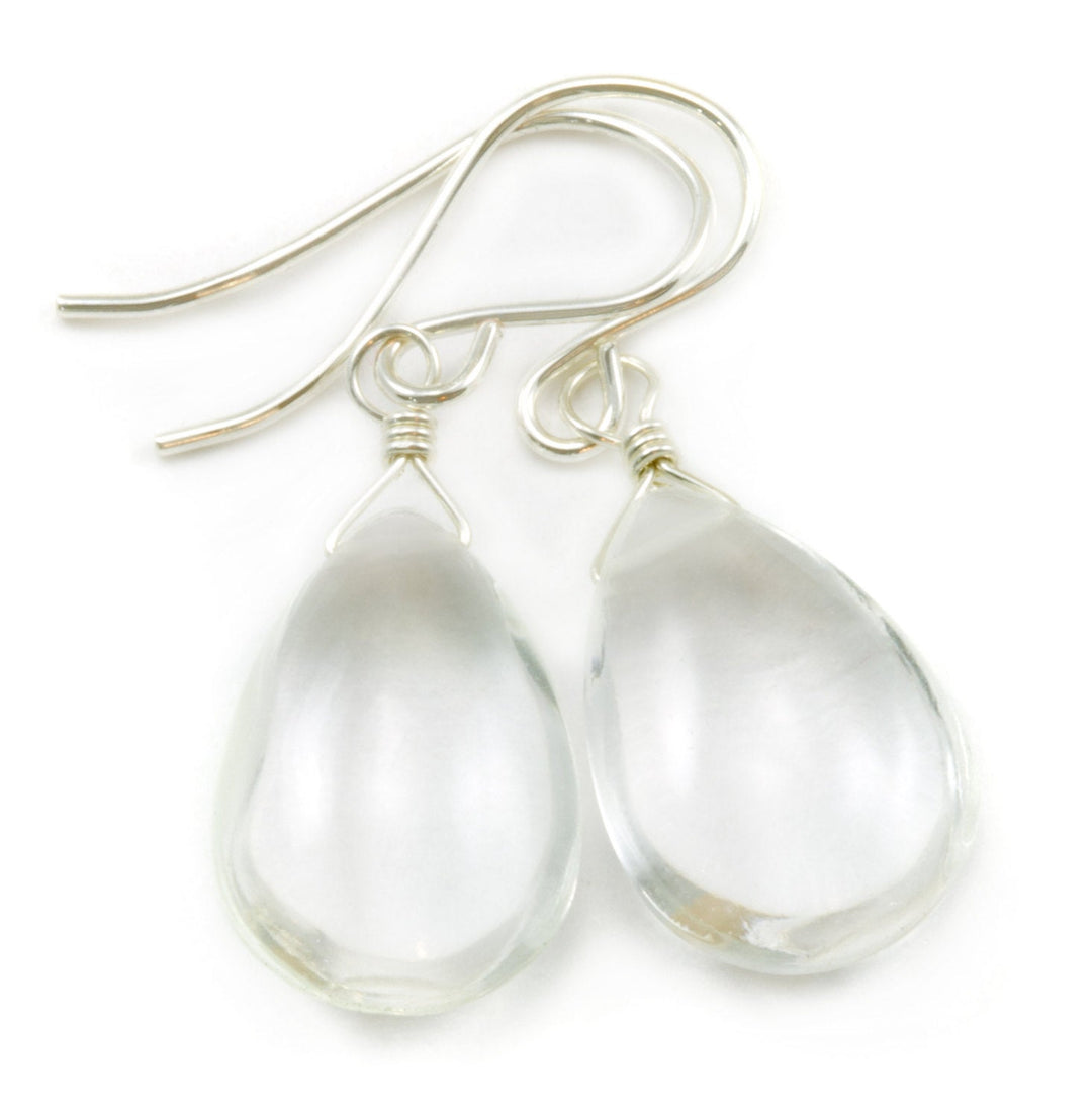 Crystal Clear Quartz Earrings Sterling Silver or 14k Solid Gold or Filled Teardrop Dangle Smooth pear teardrops simple natural daily drops