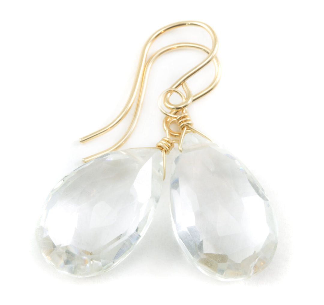 Crystal Clear Quartz Earrings Large Faceted Teardrop Drops 14k Solid Gold or Filled or Sterling Silver Natural Classic Basic Go To Drops