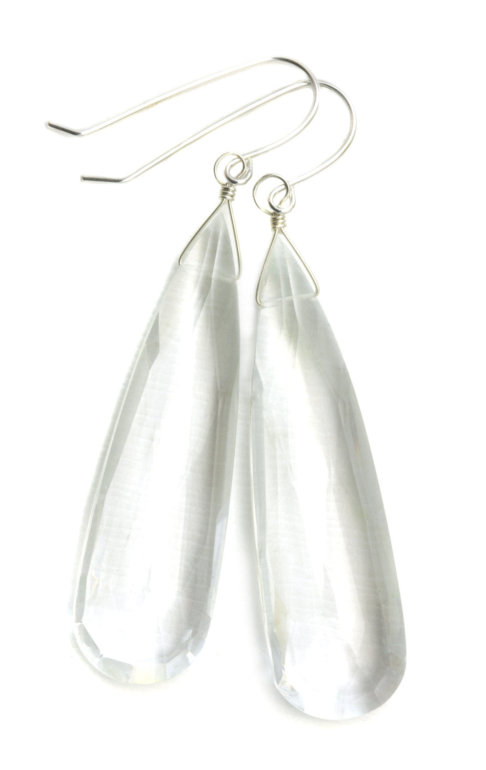 Crystal Clear Quartz Earrings Long Faceted Bezel Set Teardrop Drops Sterling Silver Neutral Everyday Classic Drops