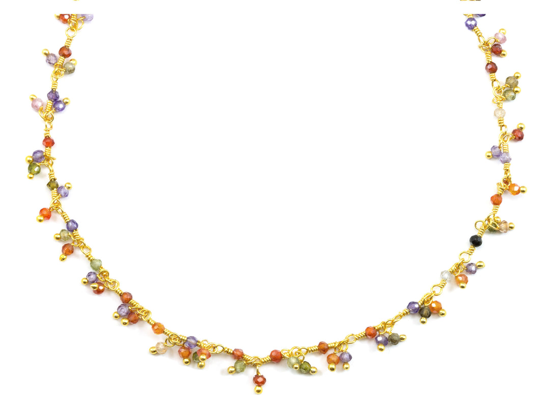 CZ Necklace 14k Gold Filled Chain Link Faceted 18 19 Inches Multicolors Cluster Style Multi Colors Dangles Cubic Zirconia