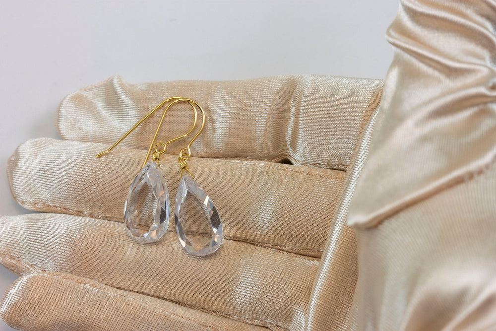 Clear Cubic Zirconia Earrings Simulated White Diamond Teardrop AAA CZ Sterling Silver or 14k Solid Gold or Filled Faceted Pear Drops 1.4 In