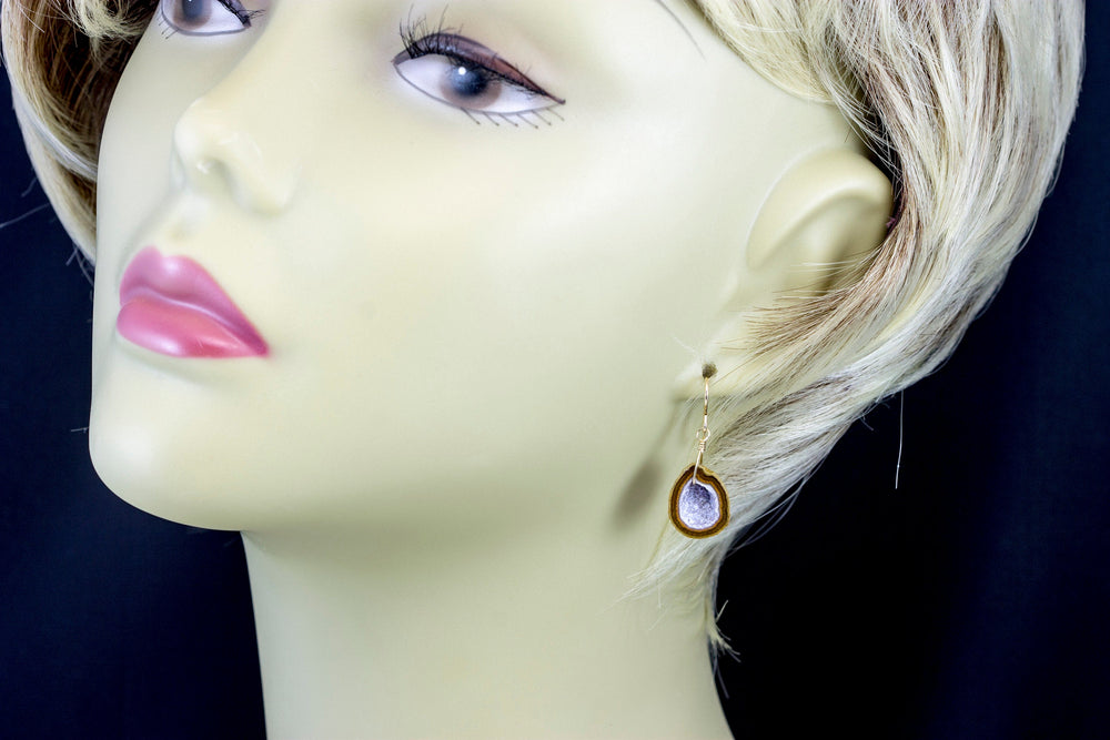 Drusy Earrings Amethyst Stalactite Slice Hand Wired Simple Purple Lavender Green Center Druzy Sterling Silver Earthy Natural