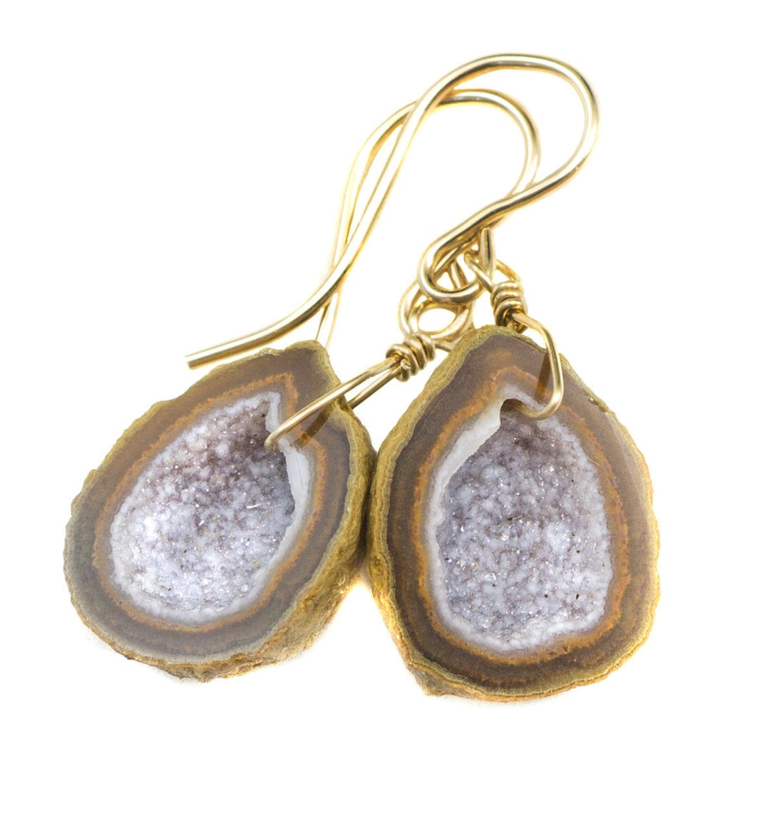 Baby Geode Earrings Tabasco White Druzy Oval 14k Gold Filled Polished Drusy Paired AAA Natural Fine Small Drusy Geodes Earthy Drops