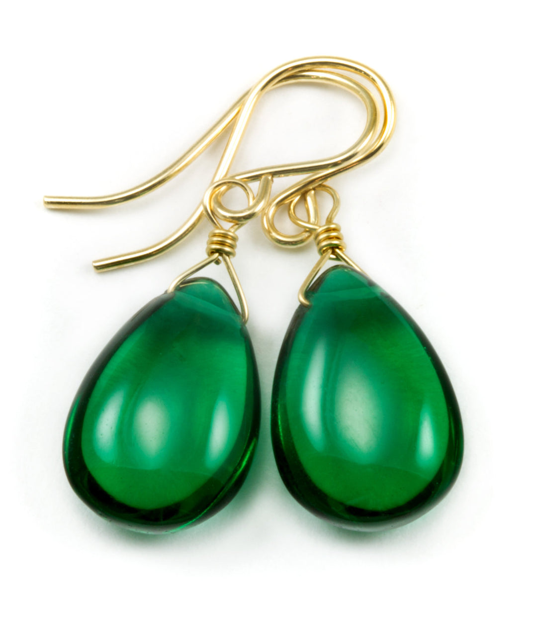 Emerald Green Earrings Facet Simulated Emerald Pear Teardrop Drop 14k Solid Gold or Filled or Sterling Silver Simple Classic Briolette Drops