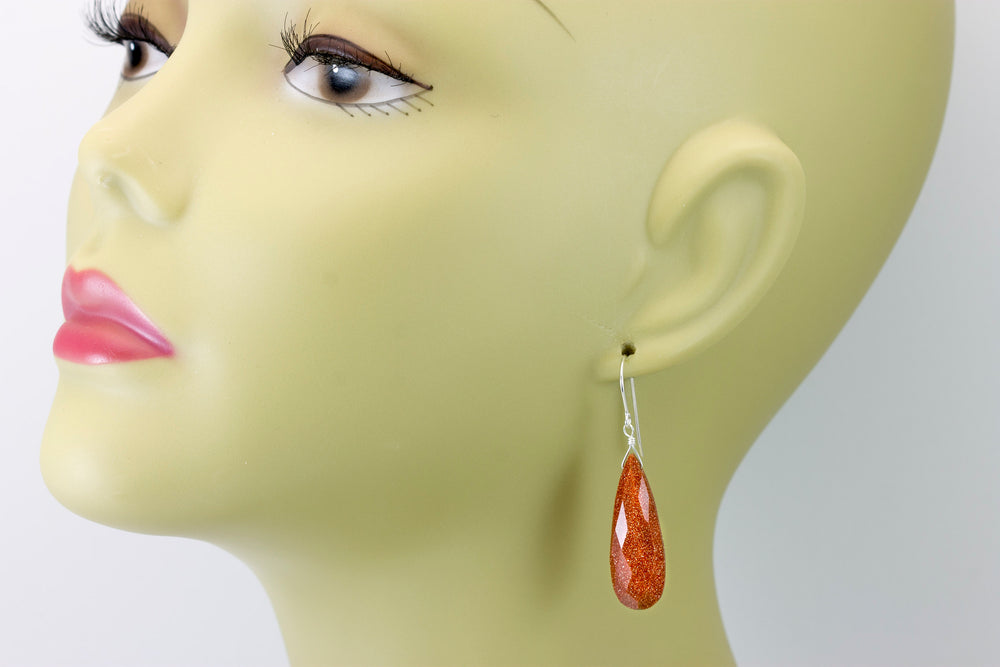 Goldstone Earrings Golden Sparkly long faceted Teardrop dangle drops Sterling Silver or 14k Solid Yellow Gold or filled Spyglass Designs