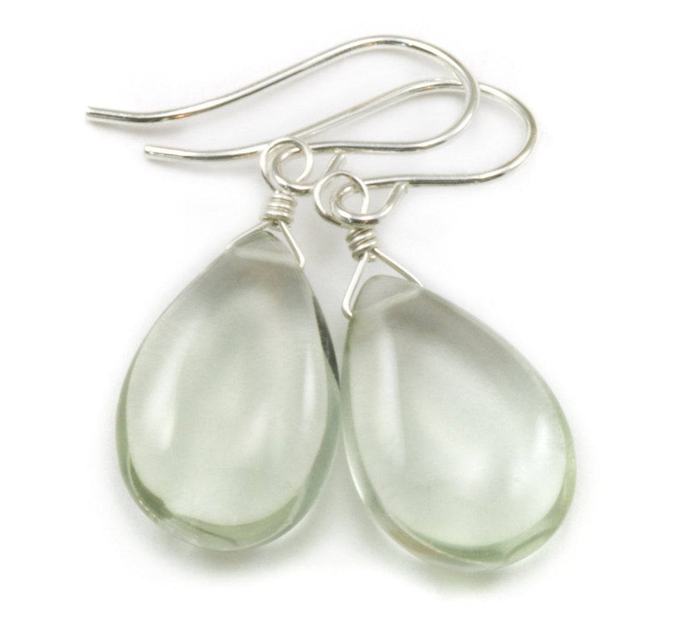 Green Prasiolite Amethyst Earrings Smooth Teardrop Drops Sterling Silver or 14k Solid Gold or Filled Pear Classic Simple Soft Pale Green