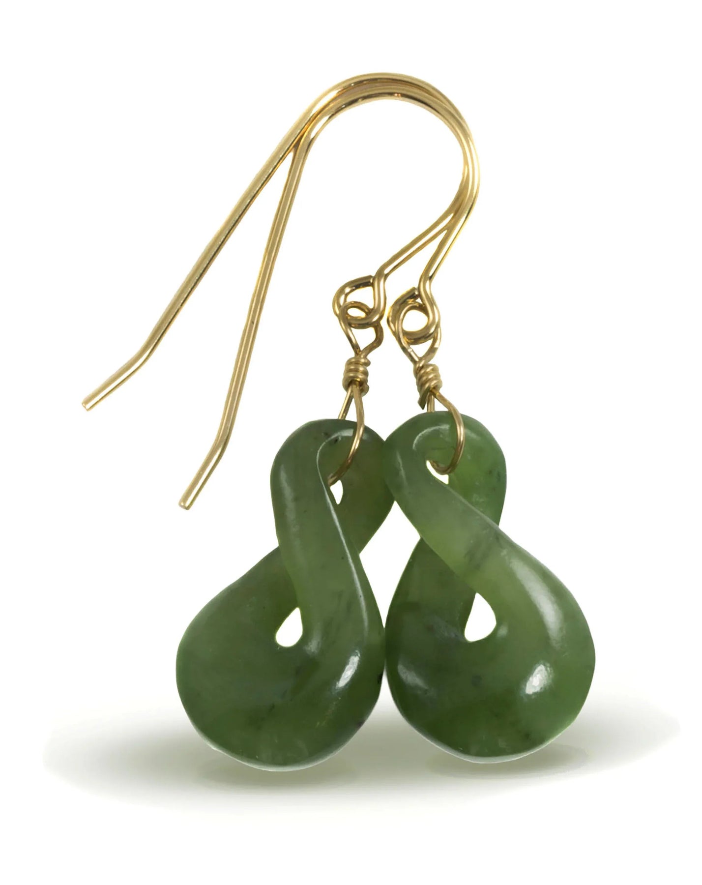 Natural Nephrite Green Jade Earrings Carved Double Infinity Teardrop 14k solid yellow gold or filled or Sterling Silver unique simple drops - Spyglass Designs