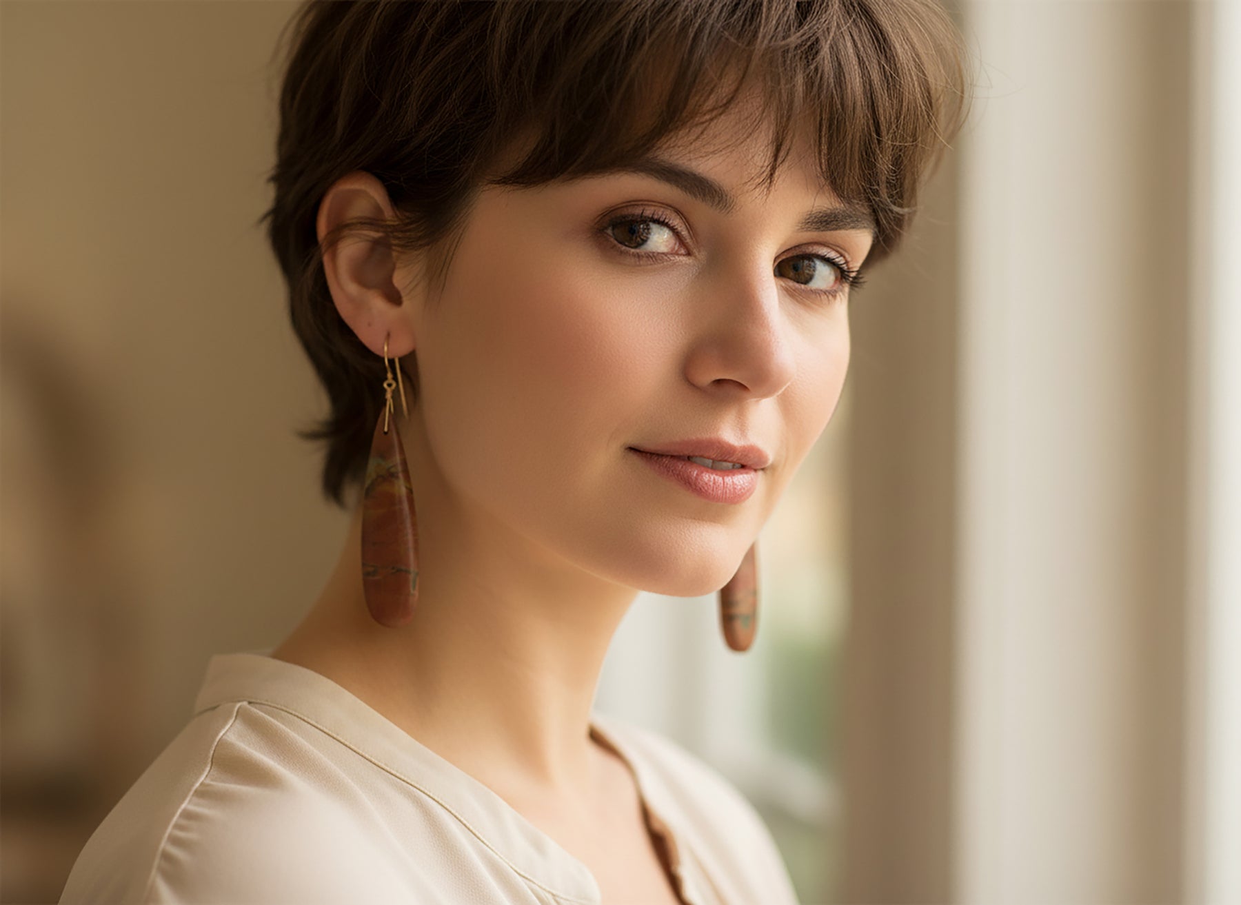 Red Creek Jasper Earrings Red Terra Cotta Brown 14k solid gold or filled or Sterling Silver Smooth Long Dangle Natural Simple Drops 2.5 In