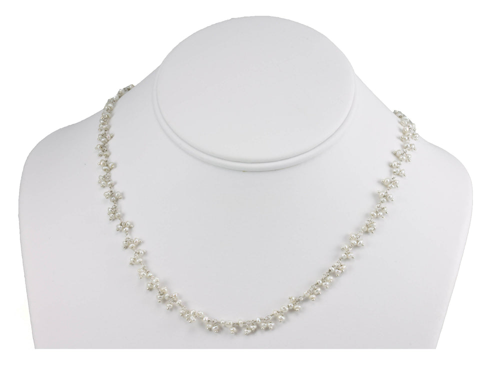 Pearl Cluster Necklace Sterling Silver or 14k Gold Filled Freshwater Cultured White Pearls Dangley Small Beaded 18 19 Inch Length