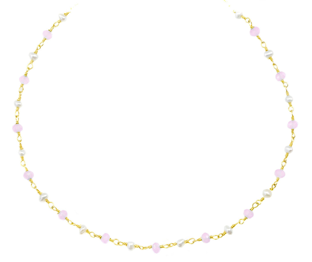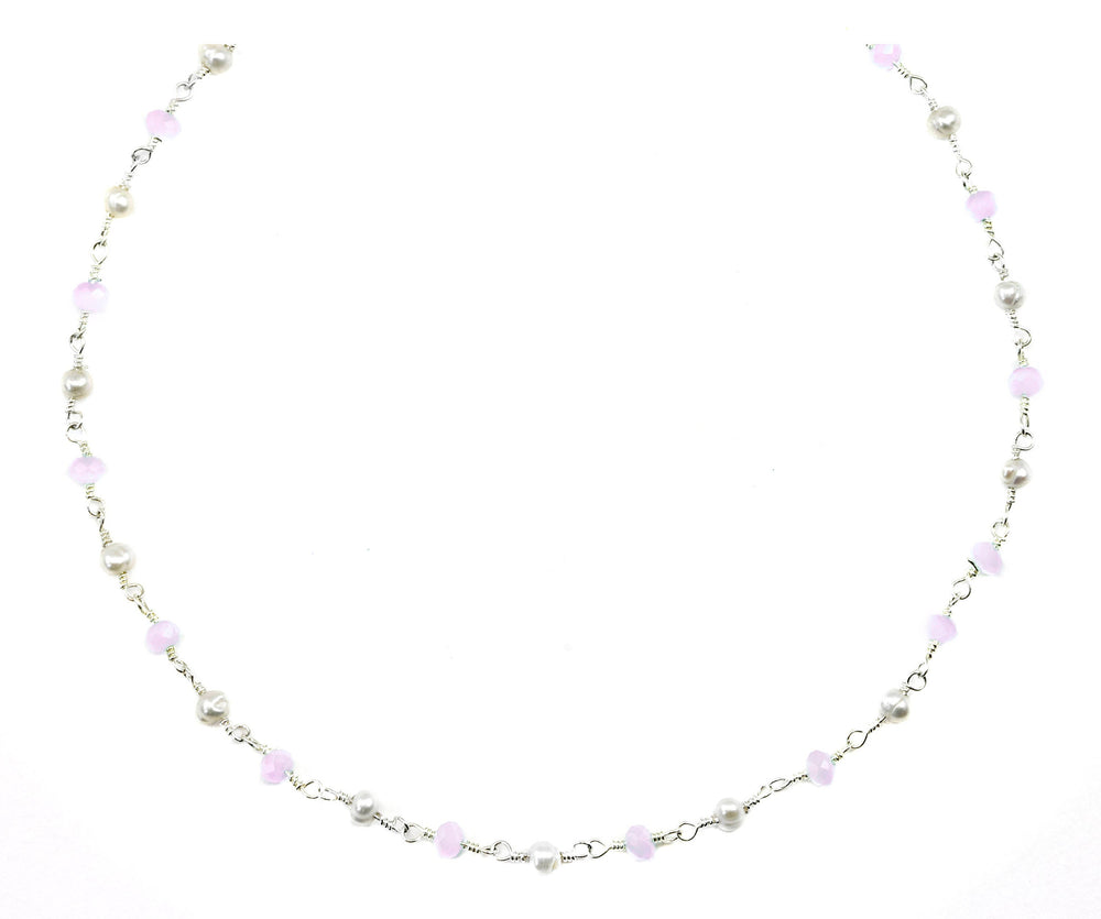 Chalcedony Necklace Pink and White Pearls Sterling Silver or 14k Gold Filled Faceted Chain Link 18 19 Inches Soft Pink Dainty