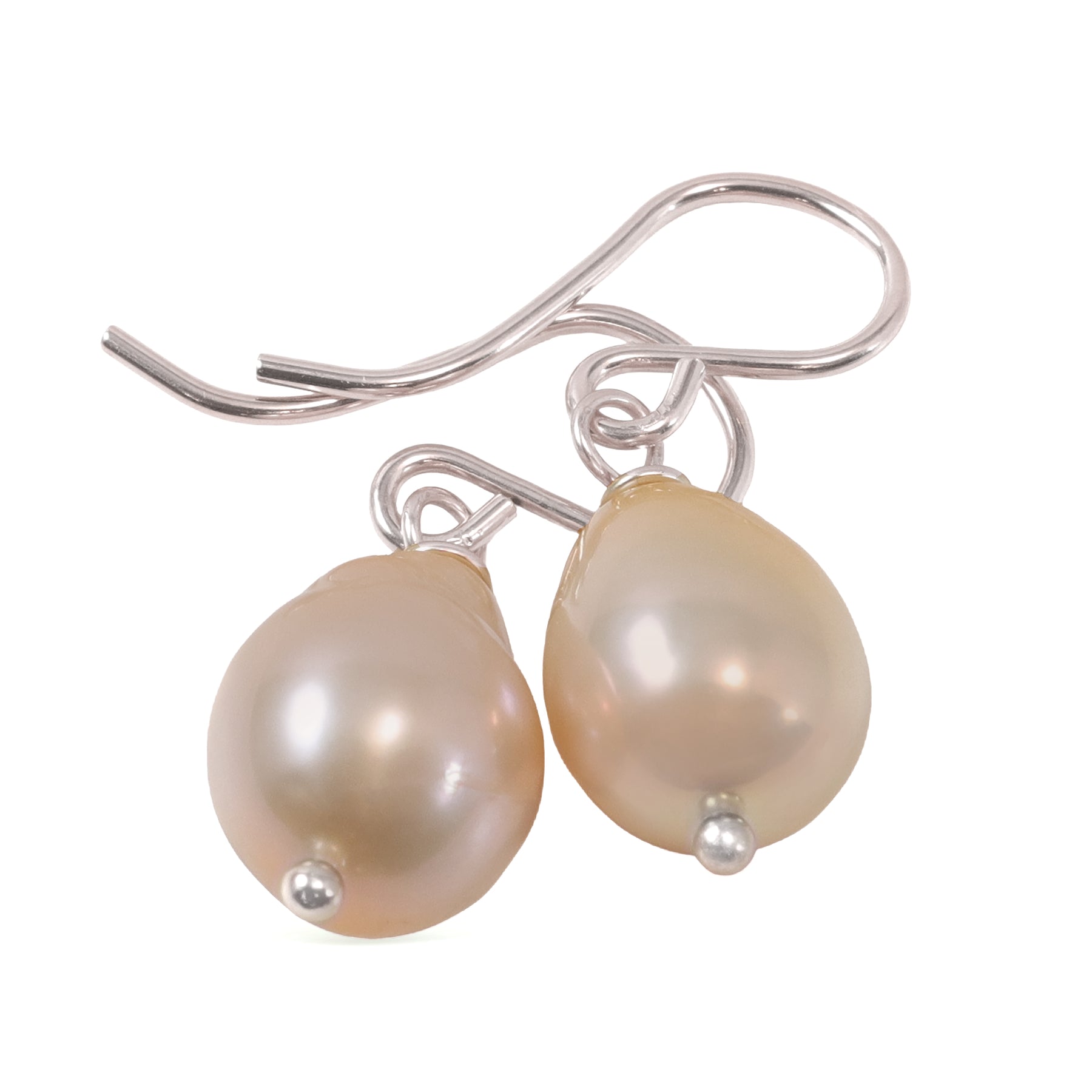 Baroque Pearl Earrings Sterling Silver or 14k Solid Gold or Filled French Earwire Champagne Pink Simple Pearls Genuine Freshwater Drops - Spyglass Designs