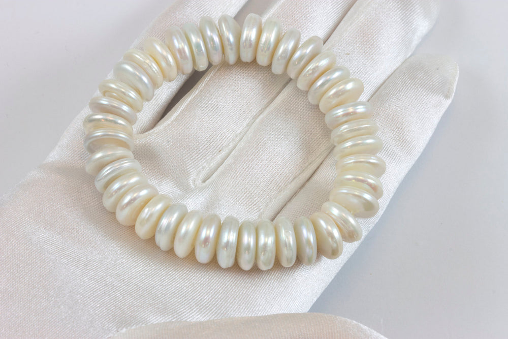 Button Pearl Bracelet White Adjustable 7 Inches Inch Simple Button Large High Luster Stretch Style Freshwater Cultured Pearls