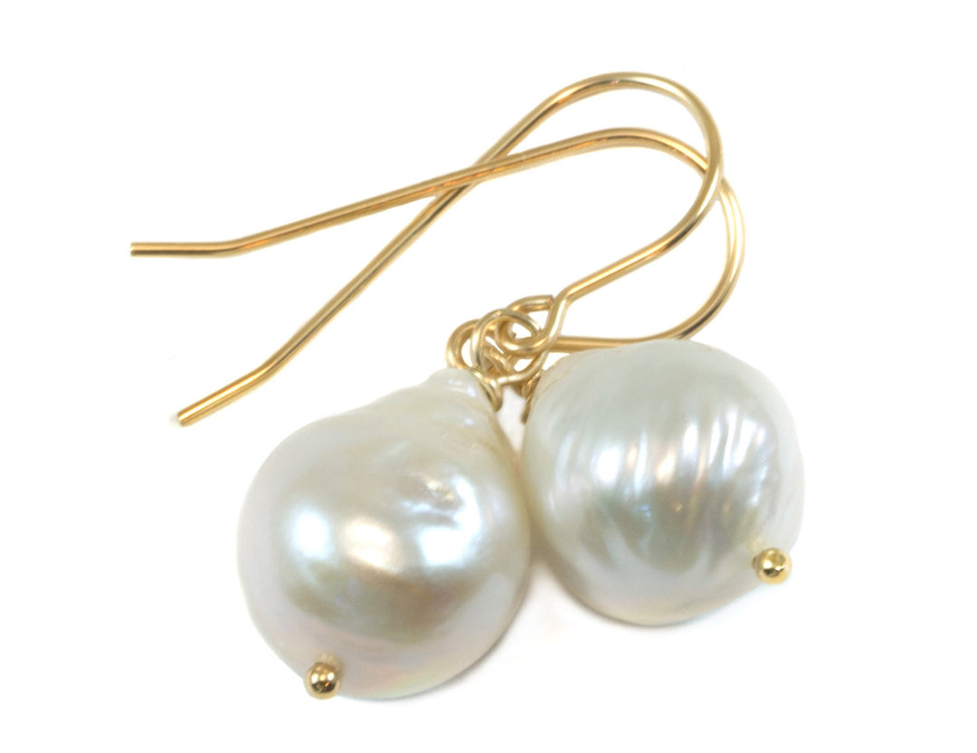 Baroque Pearl Earrings Sterling Silver or 14k Solid Gold or Filled White Natural Freshwater Cultured Pearls Large Luster Spyglass Designs