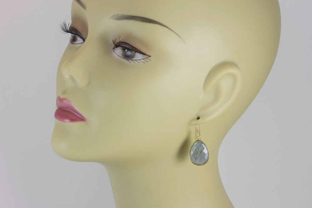Labradorite Earrings Natural Faceted Elongated Blue Oval 1.3 Inches 14k solid gold or filled Teardrop Drops Blue Flash High Quality Stones