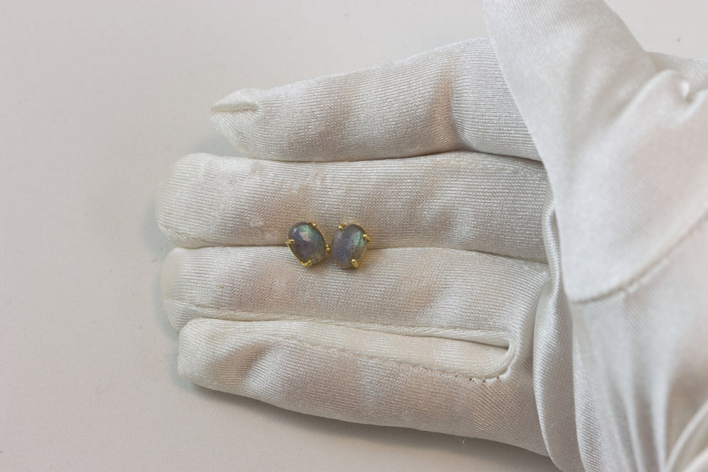 Labradorite Earrings Oval Post Studs 14k Gold Filled blue flash faceted oval stones simple classic 10mm simple everyday dainty classic