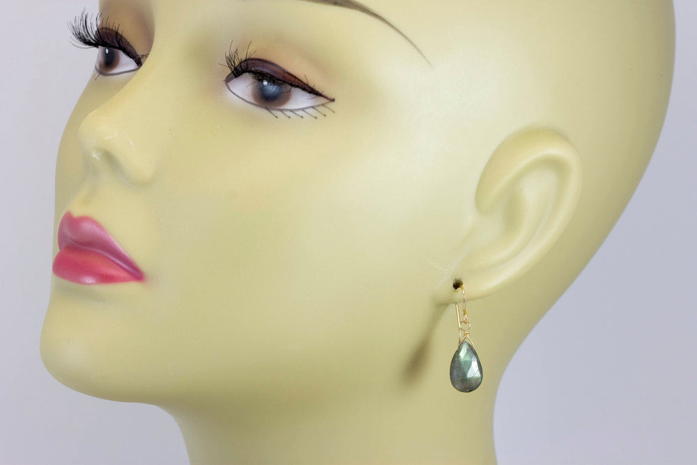 Labradorite Earrings Sterling Silver or 14k Solid Gold or Filled faceted Teardrop AAA Blue Green Golden Flash Pear Dainty Natural Simple