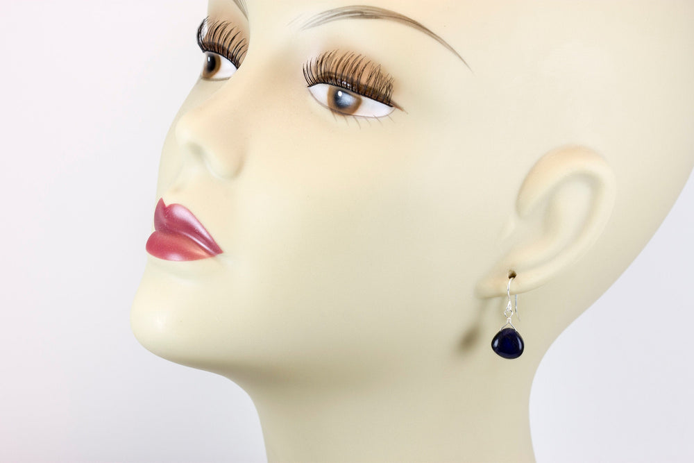 Labradorite Earrings Sterling Silver or 14k Solid Gold or Filled Small Dainty Smooth Heart Teardrop AAA Blue Flash Pear Shape Natural Drops