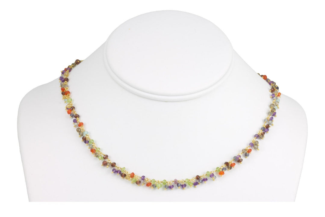 Multi Gemstone Necklace Link Beaded Cluster 14k Gold Filled 18 19 Inch Amethyst Iolite Onyx Moonstone Carnelian Aquamarine Peridot Spinel