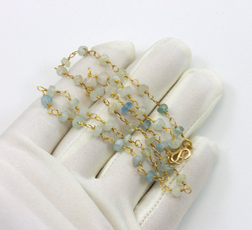 Moss Aquamarine Necklace Chain Link Beaded 14k gold filled Faceted 18 19 Inches Aqua Blue Green Natural Earthy Stones 5mm Beaded
