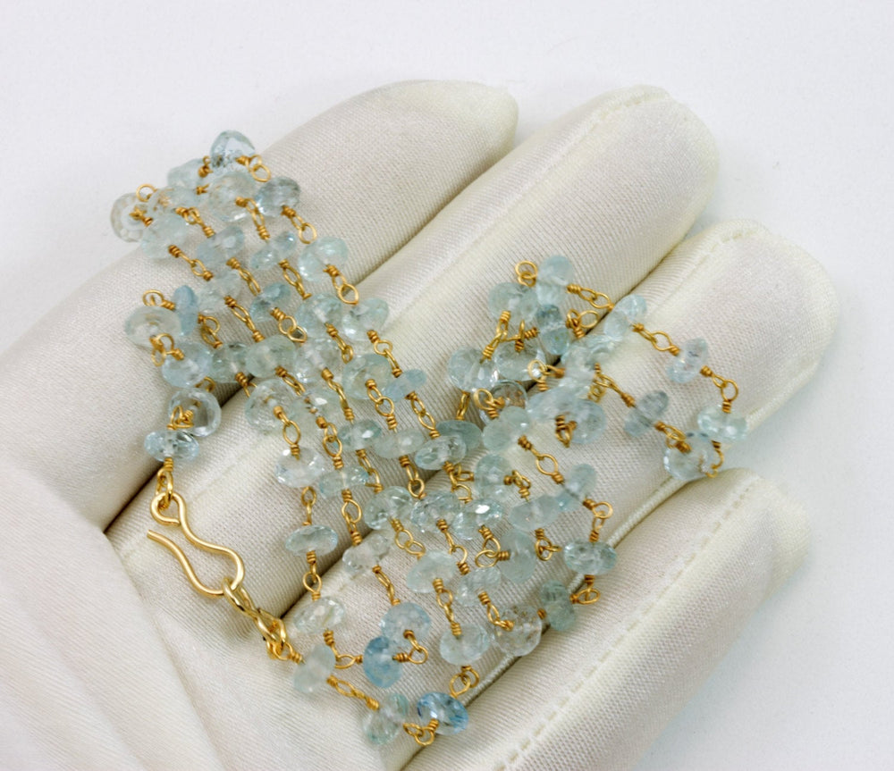 Aquamarine Necklace Faceted 14k Gold Filled Beaded Chain Link 24 Inches AAA Natural Soft Aqua Blue Classic Simple Dainty Feminine