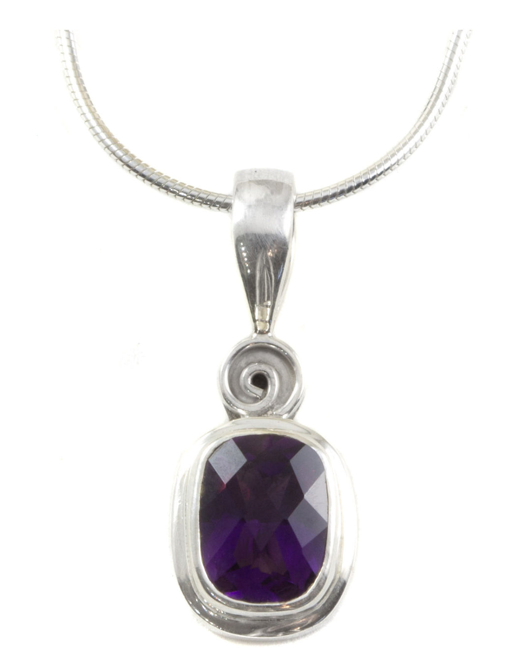 Purple Amethyst Pendant Sterling Silver Snake chain Necklace 18 Inches and Pendant Bezel Set Faceted Rectangle Shape Small Dainty Simple