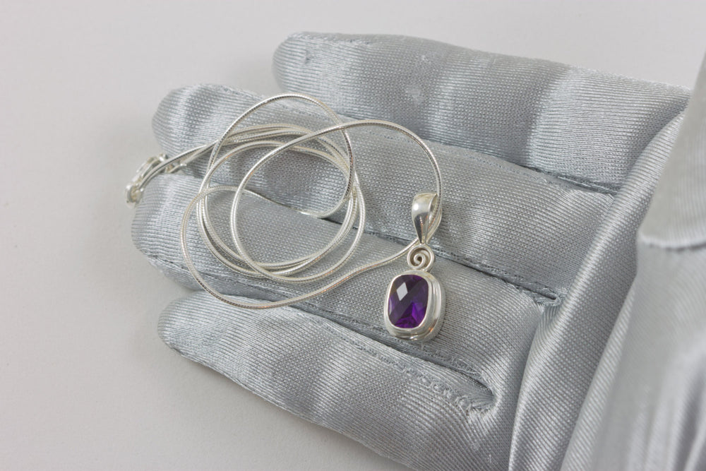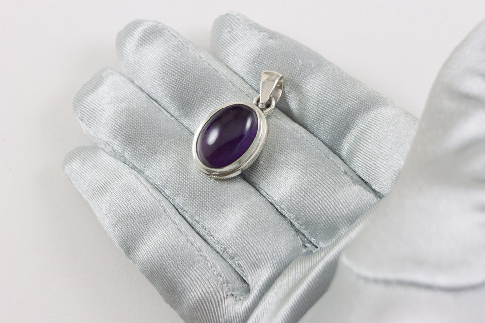 Natural Purple Amethyst Necklace Pendant smooth Sterling Silver Oval Bezel Set Cabachon Simple Unique Design Deep Rich Purple Color Classic
