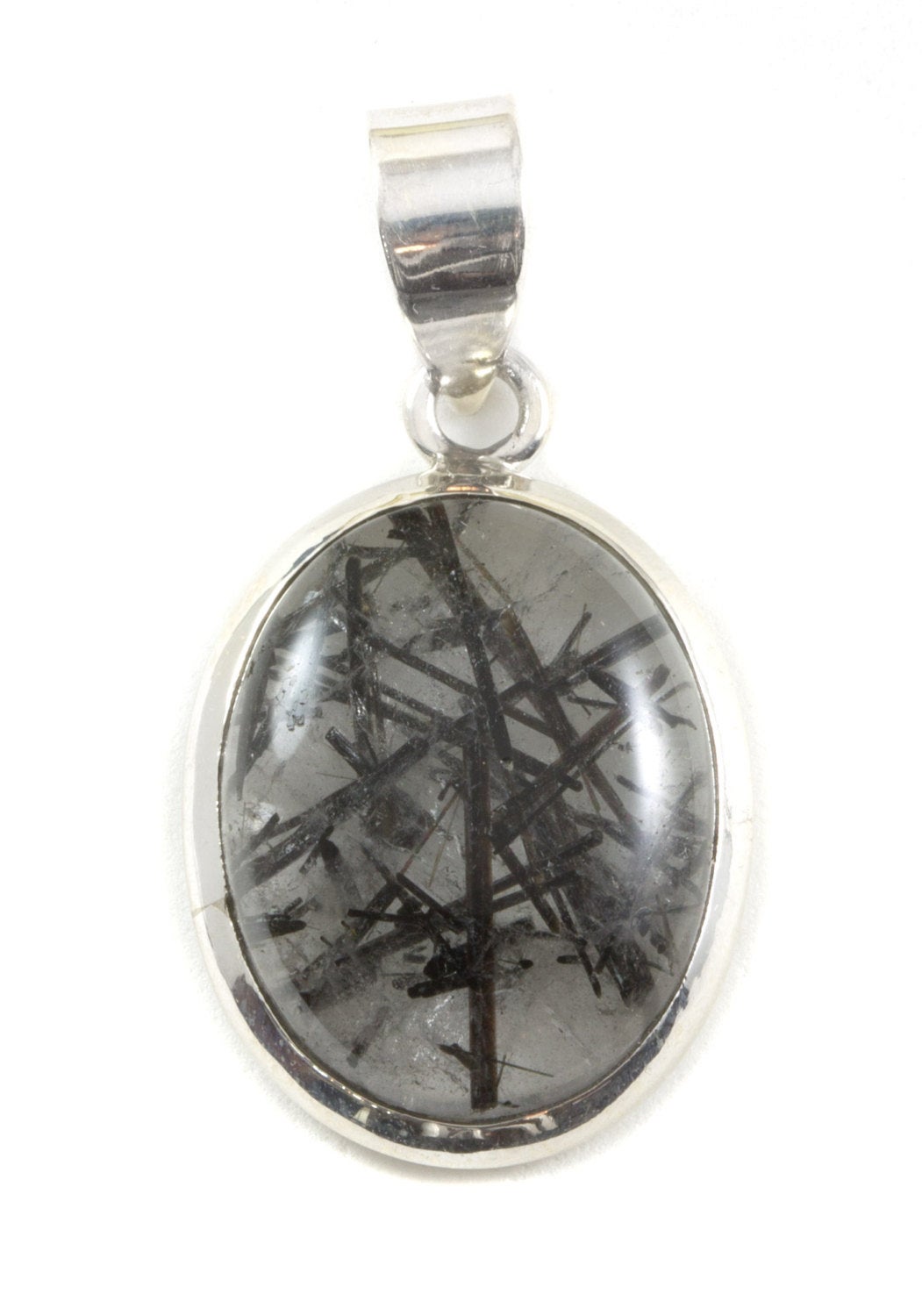 Black Rutile Tourmalated Quartz Pendant Large Oval Necklace Pendant Sterling Silver Bezel Set Natural Smooth Cabochon Thick Rutilated Simple