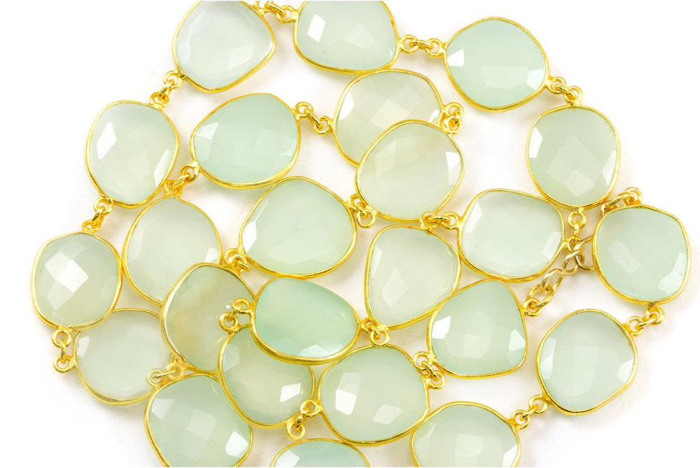 Green Chalcedony Necklace Bezel Set Stones Off Round Off Oval 24 Inch 14k Gold Filled and Plate Large Faceted Natural Stone Soft Chalcedony