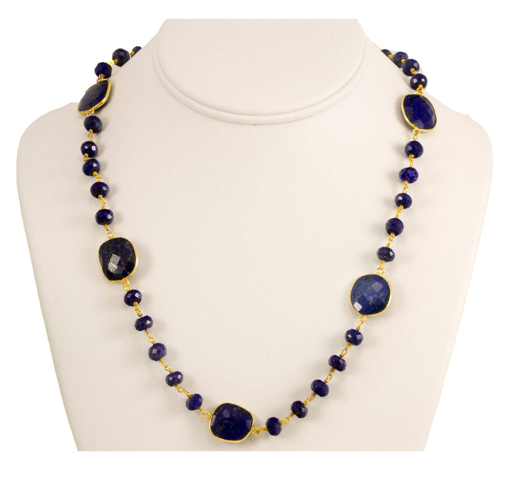 Lapis Lazuli Blue Necklace Natural Faceted Bezel Set 14k Gold Fill 24 Inches Large Off Round Stones Classic Shape and Design