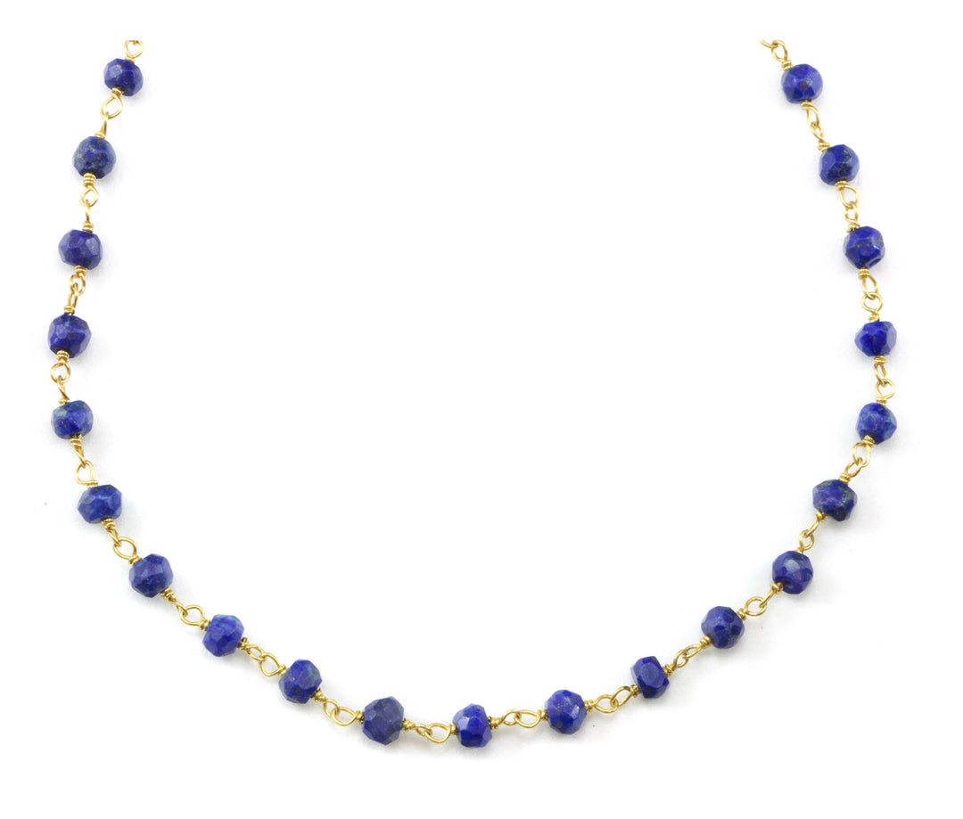 Lapis Lazuli Blue Necklace Natural Faceted Spaced Link Beaded 14k Gold Fill or Sterling Silver 18 19 Inches Simple Everyday Small Dainty