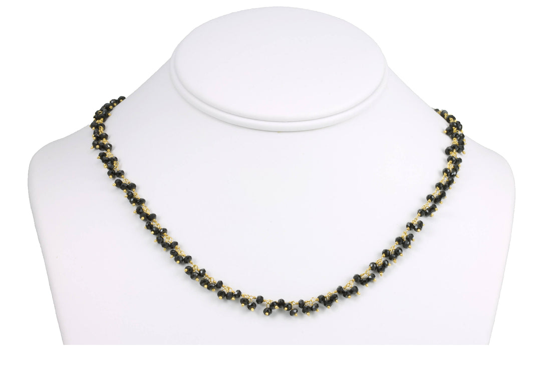 Black Spinel Necklace Faceted Spaced Link Cluster Beaded Sterling Silver or 14k Gold Fill 18 19 Inches Clusters Natural Classic Design