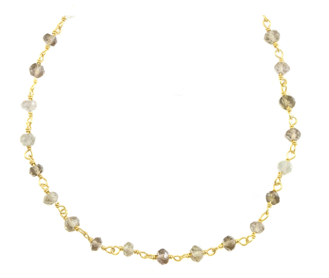 Smoky Quartz Necklace Spaced Link Smokey Beaded 14k Gold Fill or Sterling Silver 18 19 Inches Smokey Faceted Quartz Chain Spyglass Designs