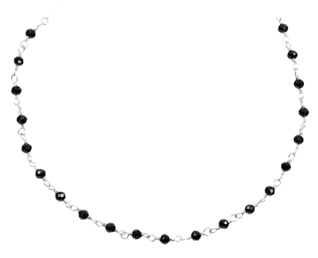 Black Spinel Necklace Faceted Spaced Link Beaded Sterling Silver or 14k Yellow Gold Fill 18 19 Inches Natural Classic Design Dainty Small