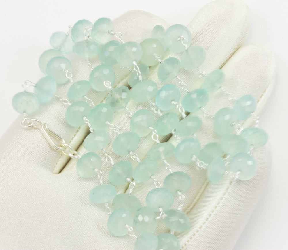 Chalcedony Necklace Aqua Blue Faceted Spaced Link Beaded Sterling Silver or 14k Gold Filled 24 Inches Soft Blue AAA Quality chain link