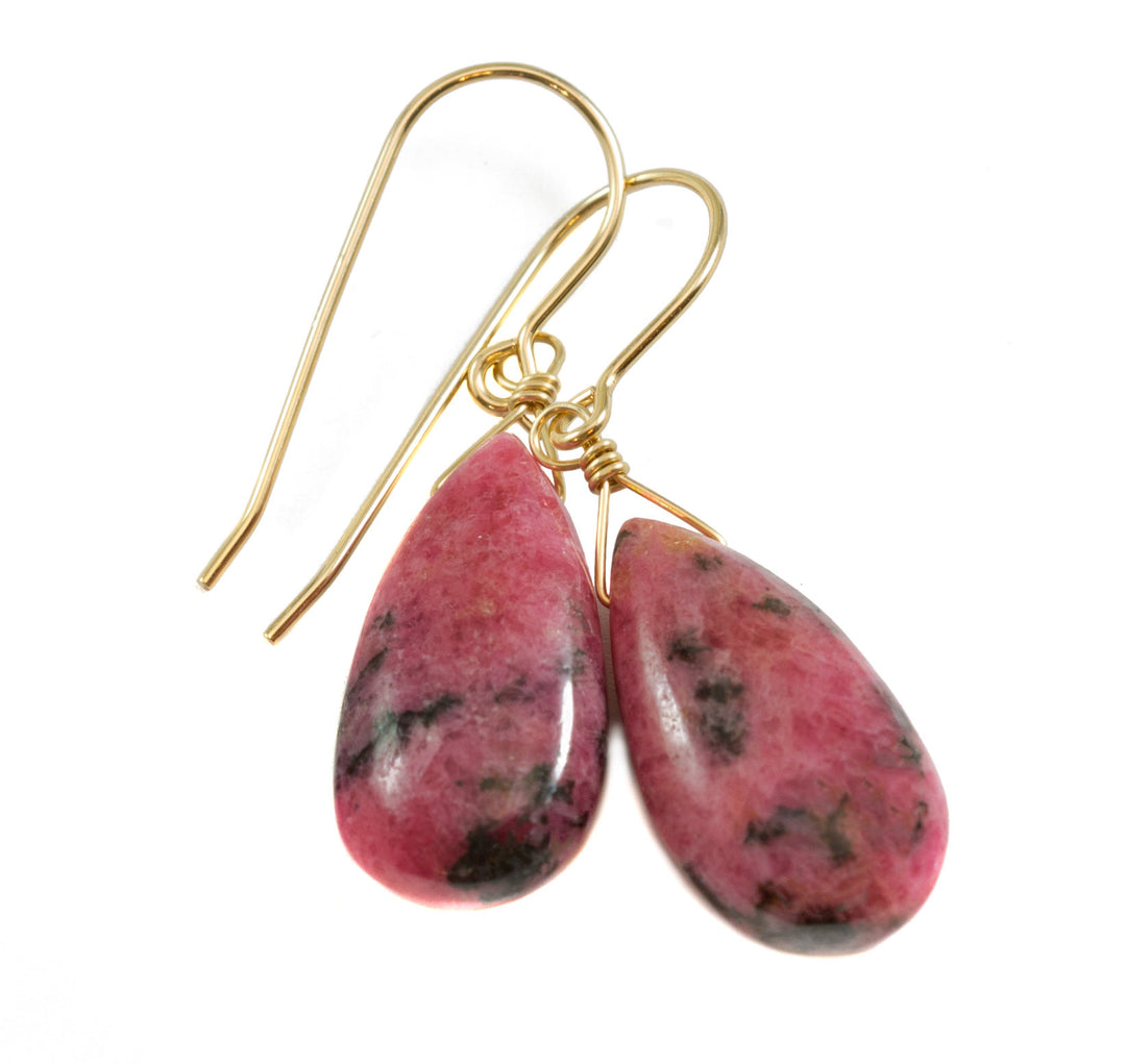 Pink Rhodonite Earrings Natural Smooth Fat Simple Teardrop dangle Sterling Silver or 14k Solid Gold or Filled Real Natural Simple Drops