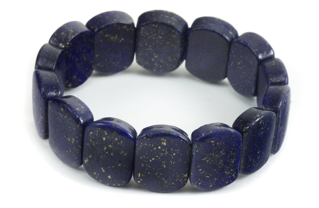 Lapis Lazuli Bracelet Large Chunky Bangle Style Stretchy Rectangular shaped Stones 6 7 7.5 Inches Adjustable natural Large Blue Pyrite