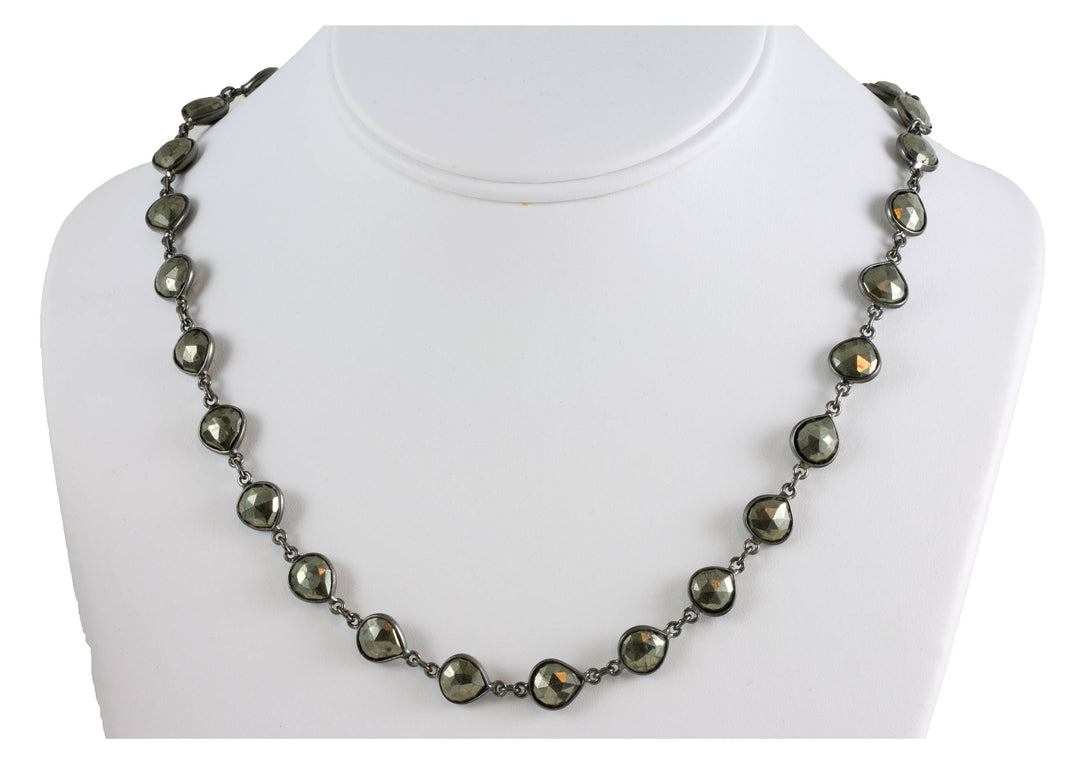 Iron Pyrite Necklace Chain Link Beaded Rhodium plate Oxidized Black Silver Faceted 24 Inch Natural Golden Bronze Color Bezel Setting