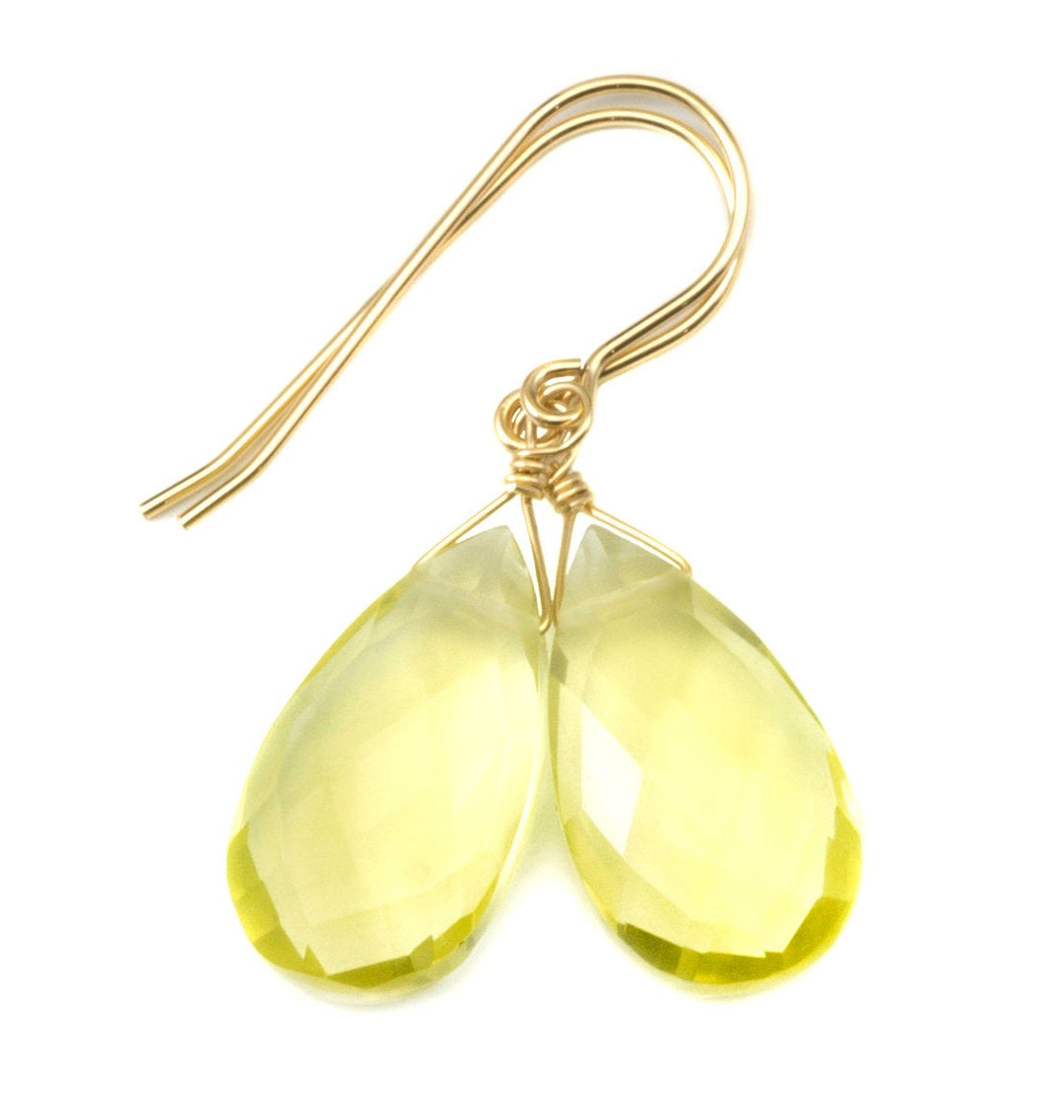 Lemon Yellow Quartz Earrings Sterling Silver or 14k Solid Gold or Yellow or Rose Filled Teardrop Faceted Natural Soft Yellow Classic Drops