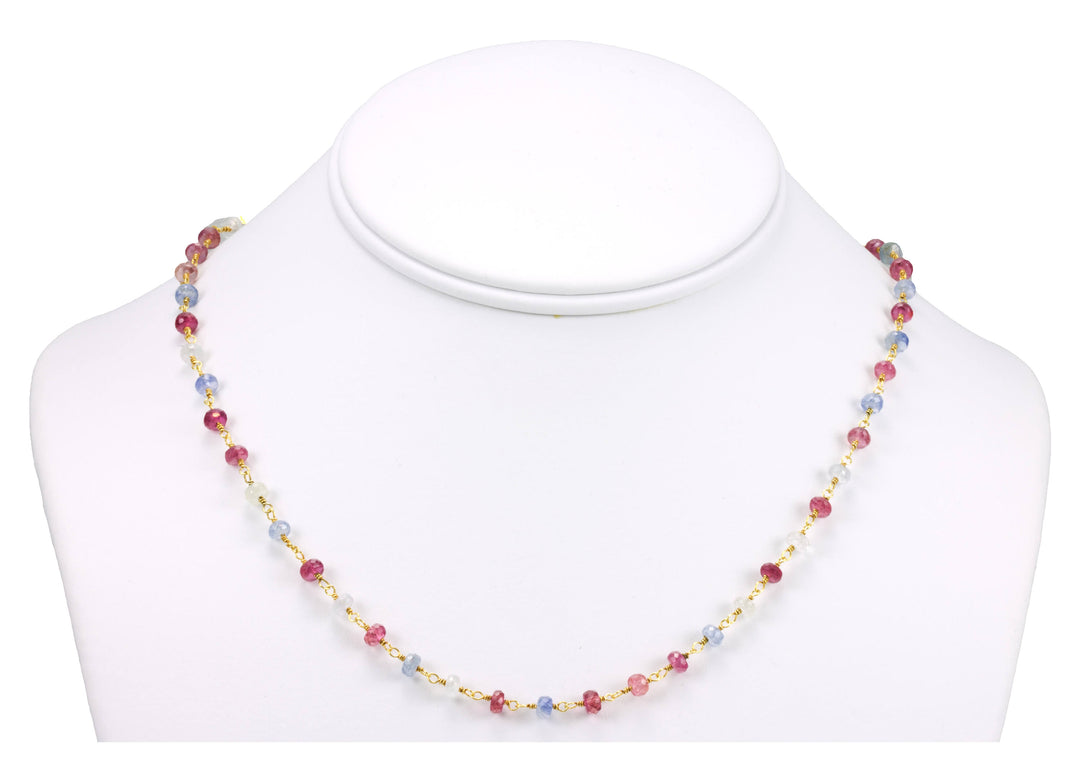 Sapphire Necklace Chain Link Faceted Real Multiple Colors 14k Gold Filled Necklace 18 19 Inches Pink Blue Dainty Simple Beaded