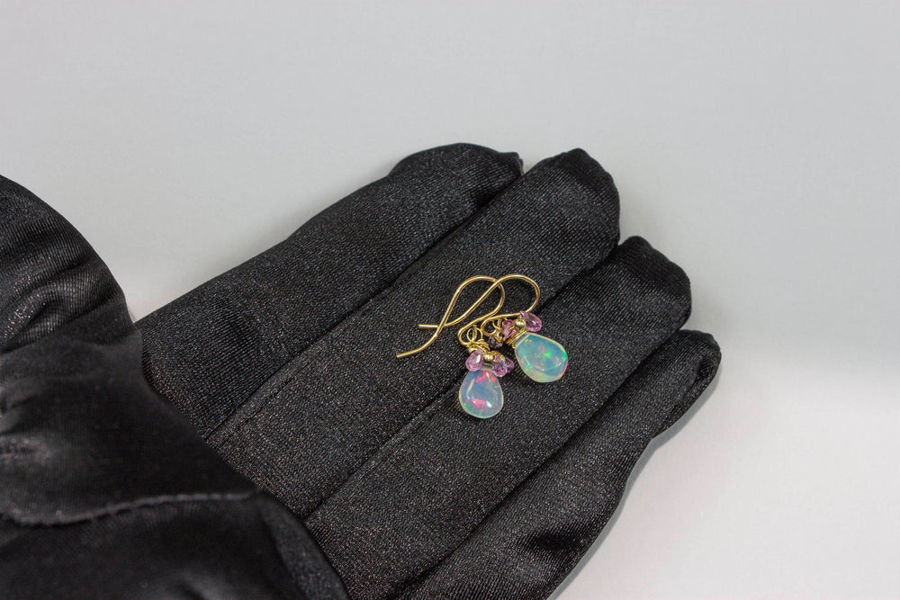 Welo Opal Earrings Smooth Shaped Teardrops Pink Sapphire Briolettes 14k Solid Gold or Filled Natural Earthy Wrap Dangles Spyglass Designs