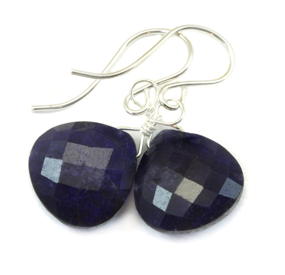 Blue Sapphire Earrings Teardrop Briolettes Sterling Silver or 14k Solid Gold or Filled Dark Blue Heart Shaped Faceted Simple Dainty Drops