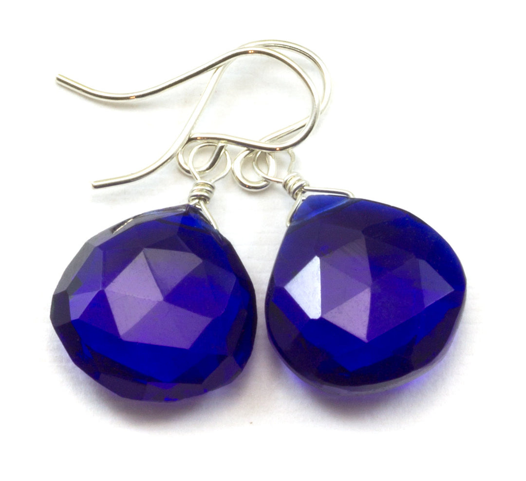Cobalt Blue Kashmir Sapphire Earrings Simulated Faceted Briolette Drops Sterling Silver or 14k Solid Gold or Filled Rich Color Heart Shaped