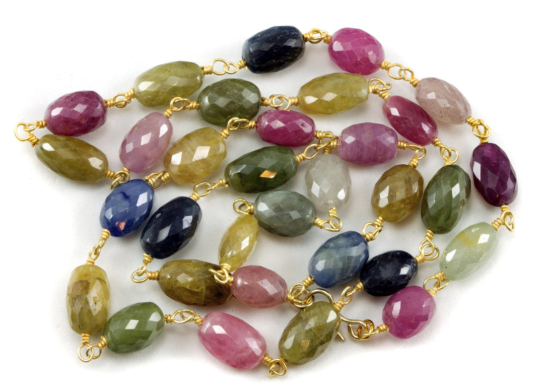 Raw Sapphire Necklace Chain Link Faceted Raw Stones Multiple Colors 14k Gold Filled Necklace 24 Inches Pink Blue Yellow Green